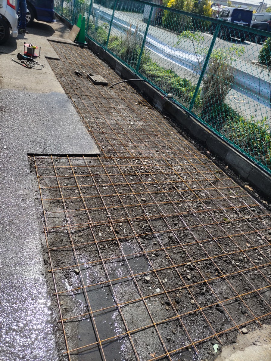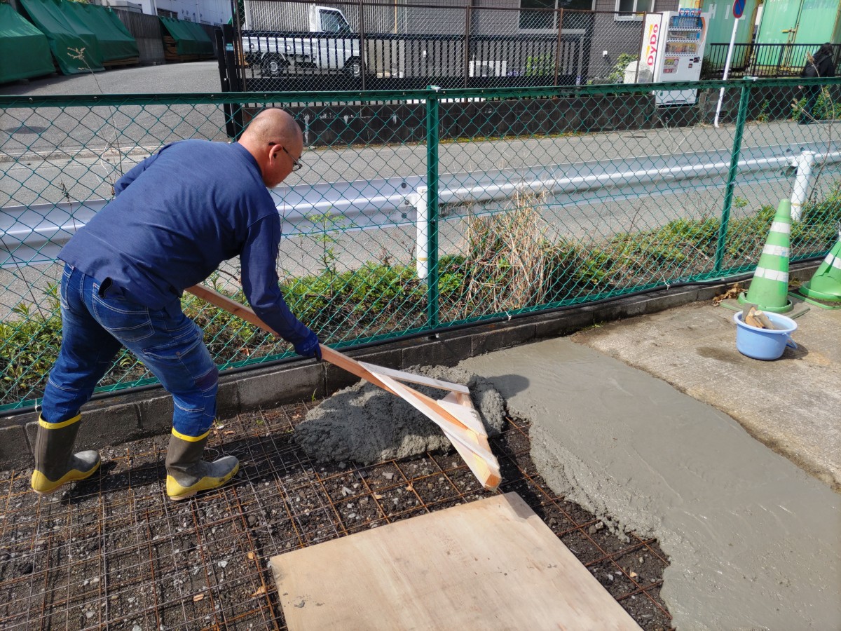 本社の駐車場が一部コンクリートは引かれてない部分がありました。