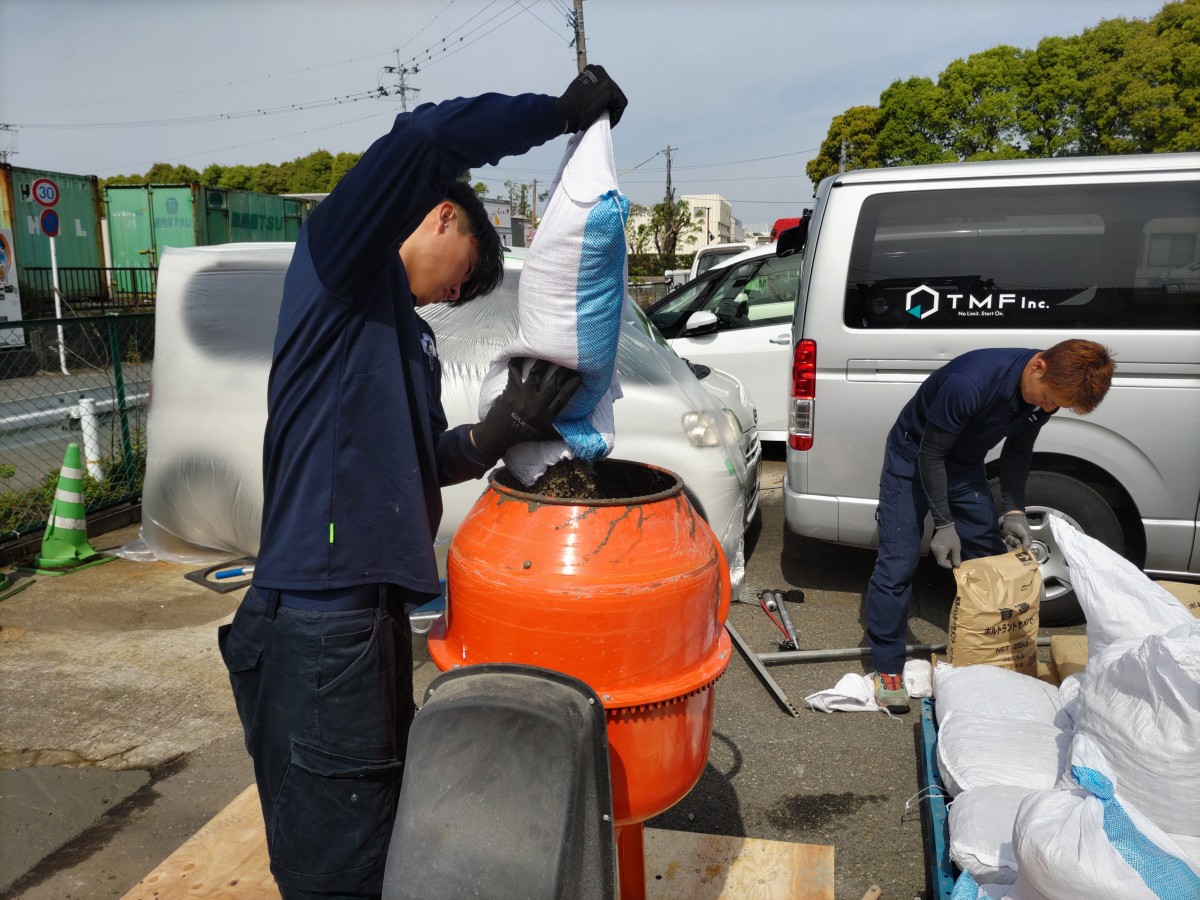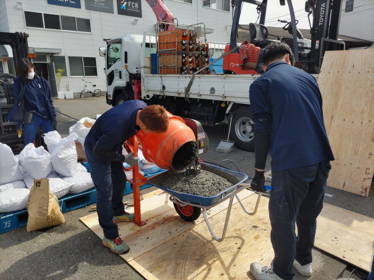 セメント・砂・砂利を混ぜて少しずつ敷き詰めていきます。