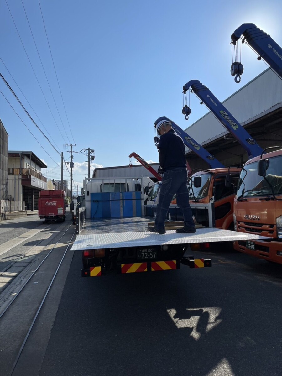 ユニック車では難しかった地下駐車場など、高さ制限のある場所への運搬も可能になりました。
